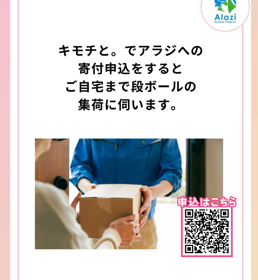 ぜひ、不用品寄付を通じてアラジの活動にご参加ください。